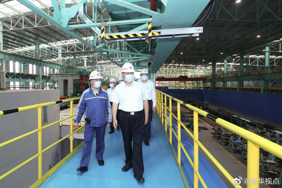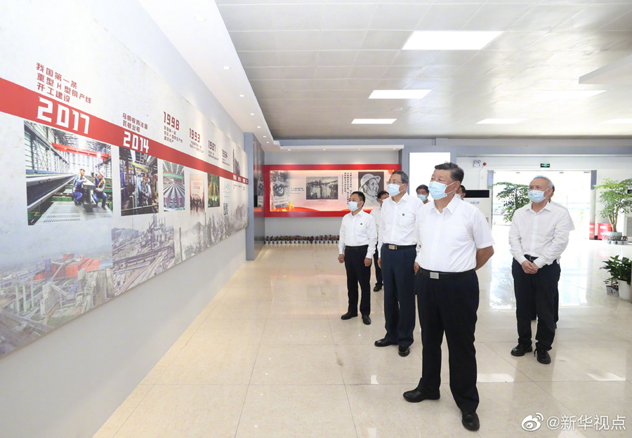 19日上午,正在安徽考察調(diào)研的習(xí)近平總書記走進(jìn)中國寶武馬鋼集團(tuán)優(yōu)質(zhì)合金棒材車間,冒著高溫察看生產(chǎn)運(yùn)行情況,并同勞動模范、工人代表親切交流。習(xí)近平指出,在抗擊新冠肺炎疫情過程中,馬鋼較早復(fù)工復(fù)產(chǎn),實(shí)現(xiàn)了產(chǎn)量、營銷收入同比雙升,展現(xiàn)了國有經(jīng)濟(jì)的強(qiáng)大韌性。他勉勵(lì)馬鋼在長三角一體化發(fā)展中把握機(jī)遇、順勢而上,特別是要把自身改革發(fā)展同長三角一體化發(fā)展有機(jī)結(jié)合銜接,力爭在長三角一體化發(fā)展中不斷發(fā)展壯大自己,也為長三角一體化發(fā)展作出自己的貢獻(xiàn)。(文字記者:張曉松 攝影記者:鞠鵬 王曄 燕雁)