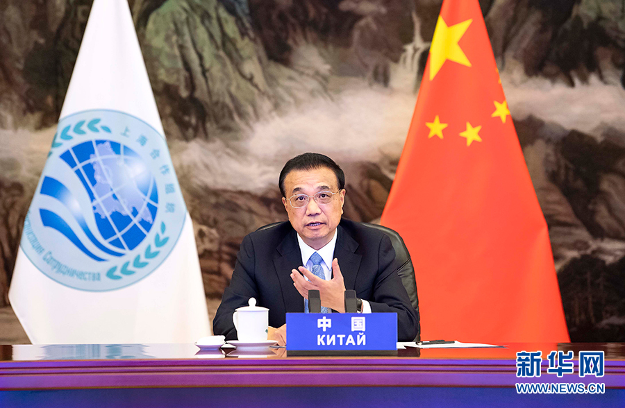 11月30日下午,國務院總理李克強在北京人民大會堂出席上海合作組織成員國政府首腦(總理)理事會第十九次會議。俄羅斯總理米舒斯京、哈薩克斯坦總理馬明、塔吉克斯坦總理拉蘇爾佐達、烏茲別克斯坦總理阿里波夫、吉爾吉斯斯坦代總理諾維科夫、印度副總統(tǒng)奈杜、巴基斯坦政府代表以及觀察員國代表等與會。會議以視頻方式舉行。 新華社記者 李濤 攝