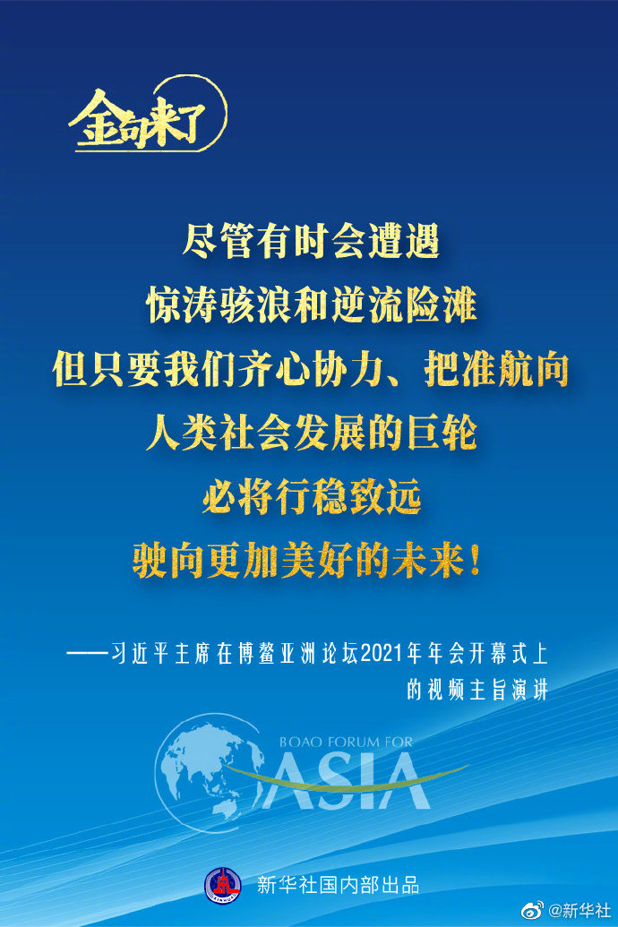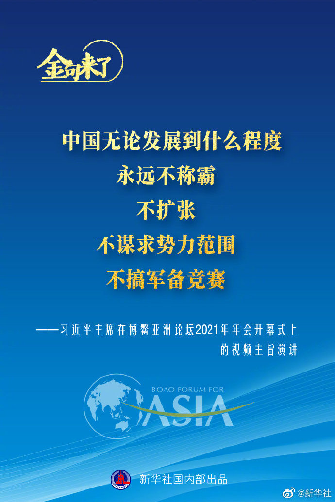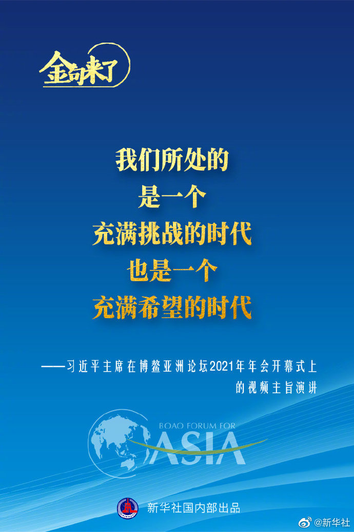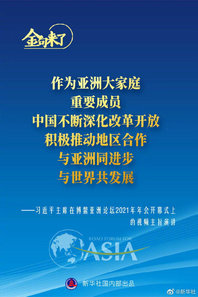 4月20日,習(xí)近平主席在博鰲亞洲論壇2021年年會開幕式上以視頻方式發(fā)表主旨演講。一起來看演講金句!?