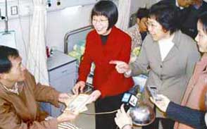 王兆國(guó)為獲獎(jiǎng)代表頒發(fā)獎(jiǎng)?wù)潞妥C書