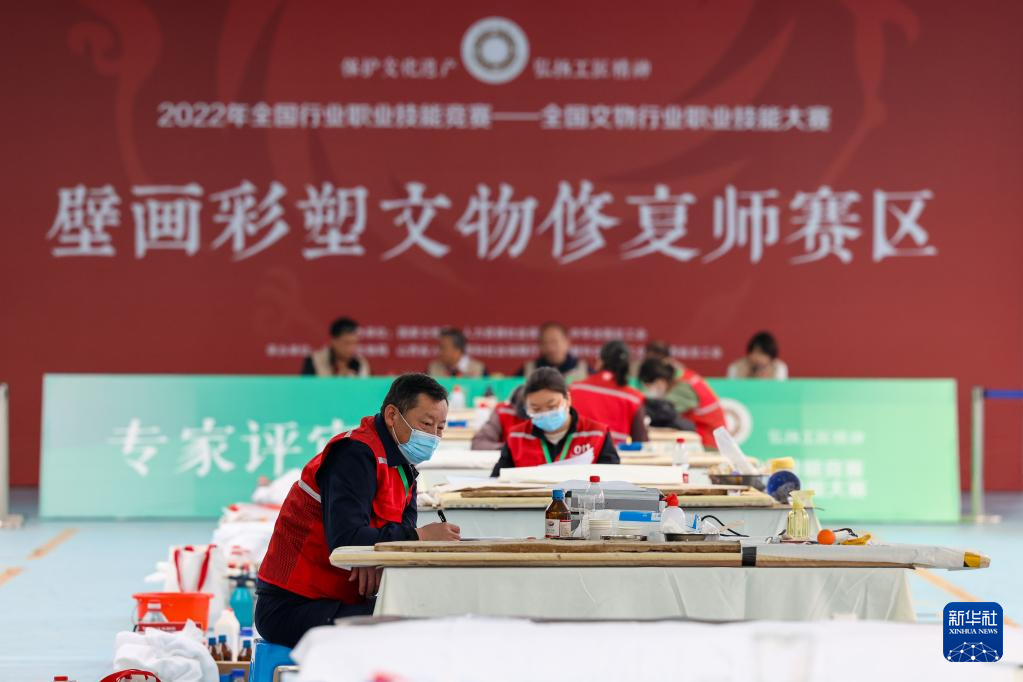 3月25日,选手参加壁画彩塑文物修复师比赛项目。