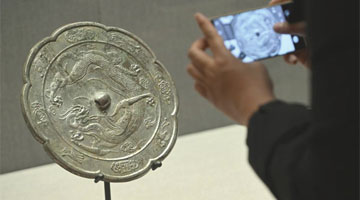 3月29日,参观者在“羊城烟火气——广州出土汉代建筑模型明器展”现场参观。