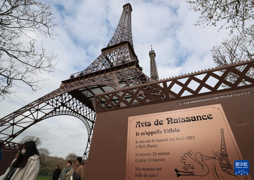 艺术家菲利普·曼德龙制作的“小埃菲尔铁塔”是法国巴黎地标建筑——埃菲尔铁塔十分之一大小的复制品,将在原作附近展出到4月10日。