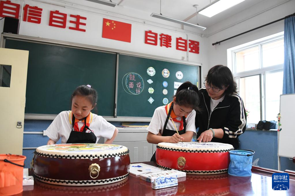 当日,北京市平谷区门楼中心小学举办鼓文化课程展示活动。据了解,门楼中心小学以鼓文化为核心,设计了鼓韵操、绘制鼓面、剪纸、绳艺编织等艺术类美育课程,这些课程相互衔接,让学生感受中国传统文化魅力的同时,助力学生快乐成长。
