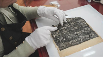 4月29日,观众在参观八大山人和吴昌硕的印章对比。