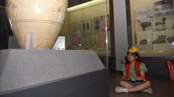 7月6日在上海博物馆展厅拍摄的晚清金石学家吴大澂《愙斋集古图》原器与墨拓对照(部分)。