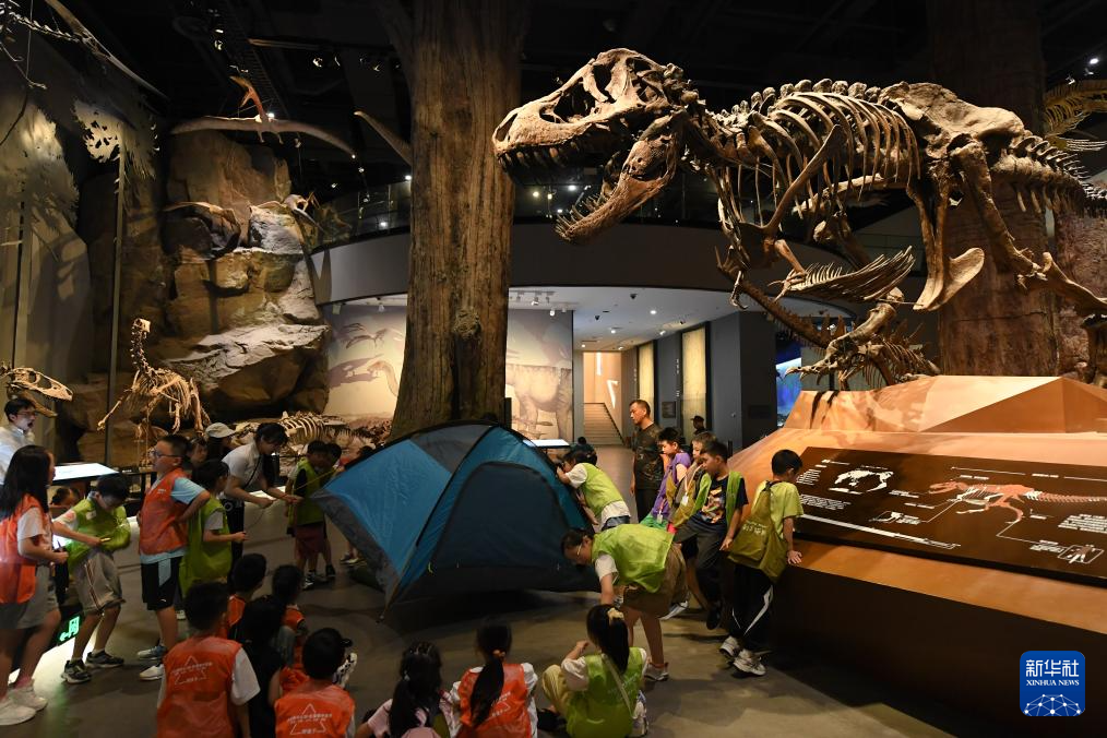 暑假期间,浙江自然博物院安吉馆开启夜游项目,以游戏闯关、扎营夜宿等形式让孩子们对博物馆进行深度探索,培养对自然的好奇心。