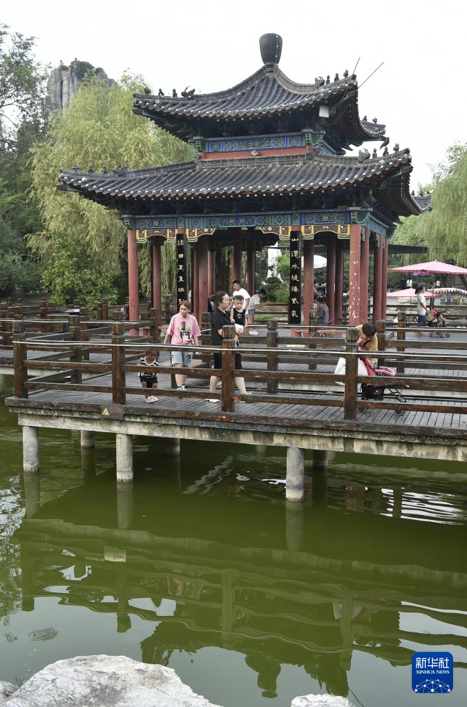 8月19日,游人在中国翰园碑林景区游览。