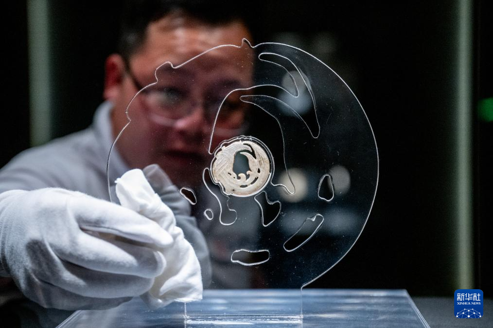 3月30日,工作人员在固定展品玉团凤。