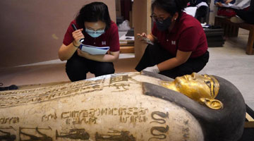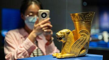 这是在位于北京十里河的工作室内展示的冀豫团队的宫毯作品(6月27日摄)。