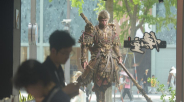 8月25日,小朋友展示为大元社乡村青少年艺术节戏剧表演设计的“数学老师”造型。