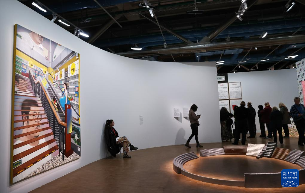 10月8日,人们在法国巴黎蓬皮杜中心参观中国当代艺术家群展《目:中国境象》。