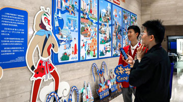 11月9日,在加拿大温哥华举办的灯光节上,人们观赏一个模拟极光的灯光装置。