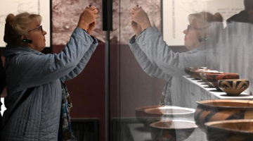 11月9日,在加拿大温哥华举办的灯光节上,人们观赏一个使用全息投影创作的灯光装置。