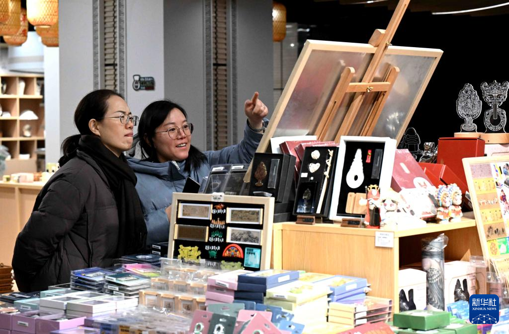 12月11日,游客在河北博物院文化创意空间选购产品。