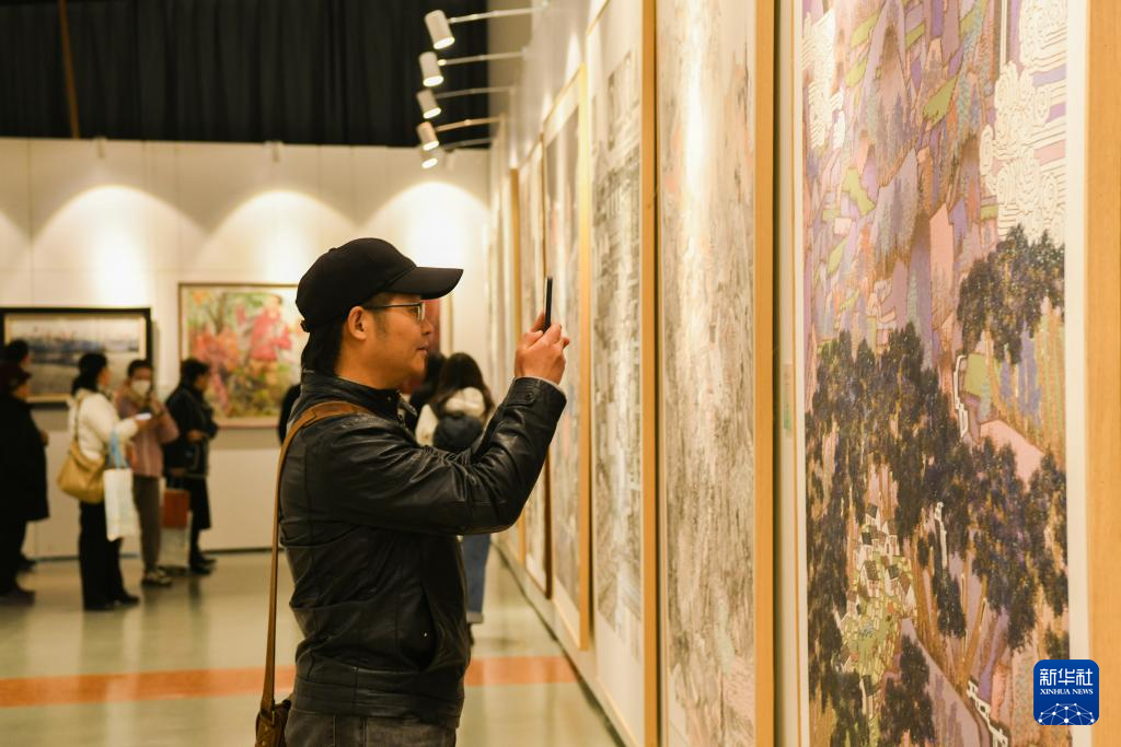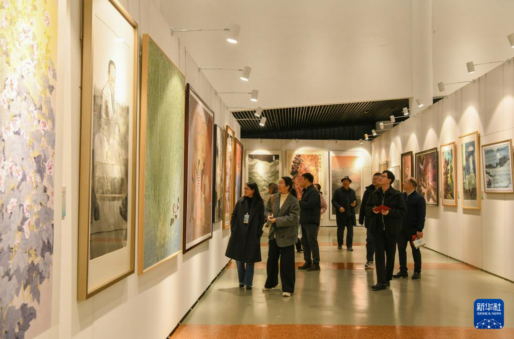12月20日,观众在欣赏书画作品。
