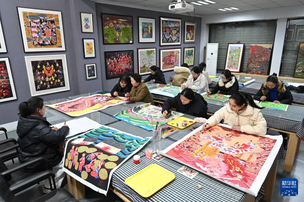 1月10日,农民画爱好者在漳平市农民画院学习、创作农民画。
