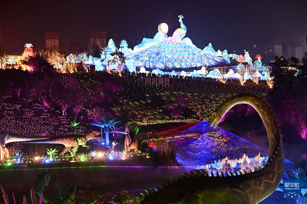 当晚,第31届自贡国际恐龙灯会在四川省自贡市中华彩灯大世界亮灯试展。本届灯会以“灯贺中华 气象万千”为主题,打造“迎春贺年”“华彩神州”“欢乐盛典”“文明交辉”等七大主题区,共制作12组特大型灯组、7组大型灯组与200余组中小型灯组,吸引游客前来赏灯游园。