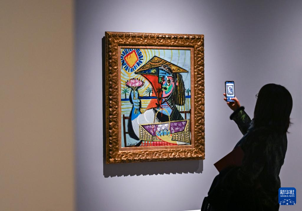 1月21日,媒体人员在“印象·派对”艺术大展拍摄毕加索的作品《卖花女》。