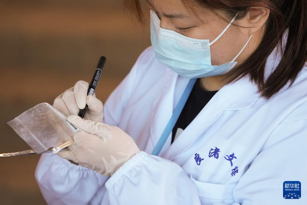 在良渚古城遗址世界遗产检测管理中心,科研人员在做遗址土样酸碱度测试(4月18日摄)。