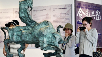 7月13日,游客在位于老挝首都万象的老挝艺术博物馆参观留影。