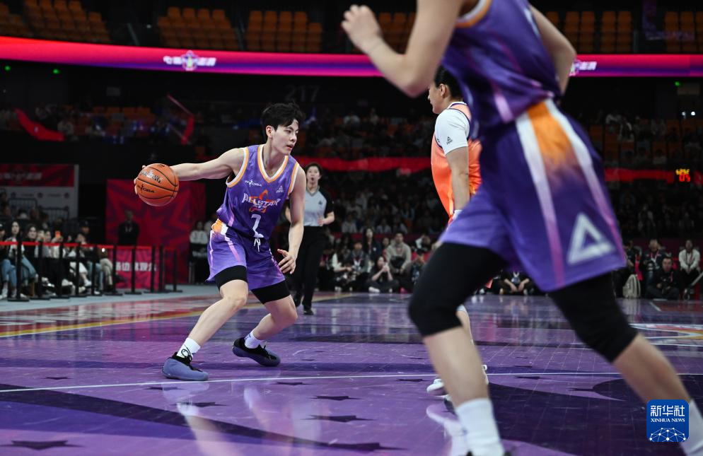 3月22日,南区明星队球员杨舒予(左一)在比赛中进攻。