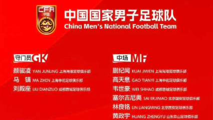中国男足公布26人集训名单:U23国足8人入选
