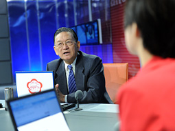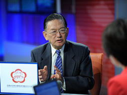 石仲泉在與主持人交談