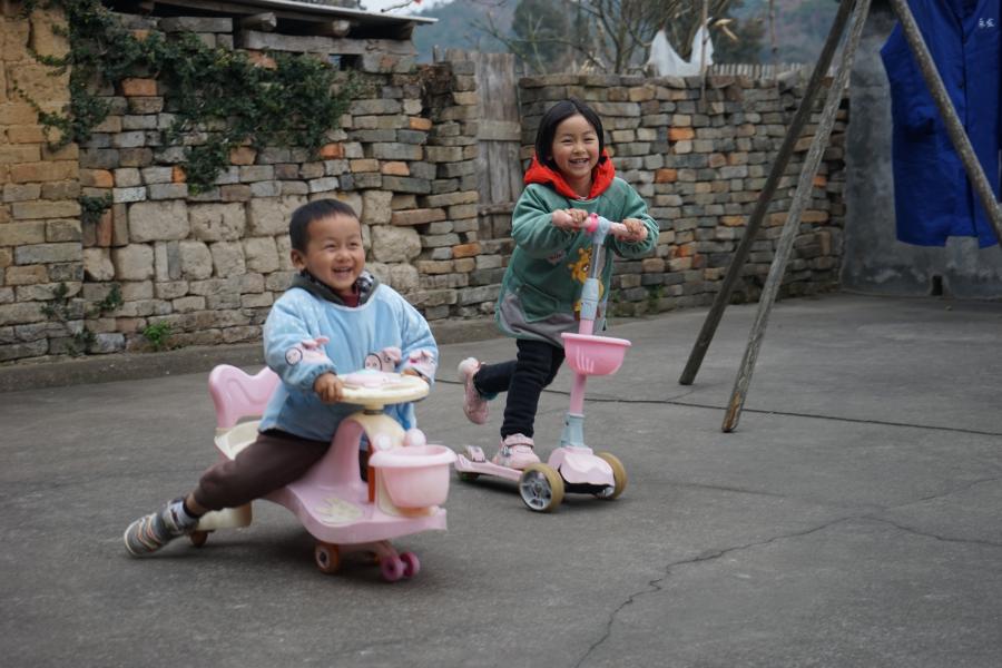 2日,在清伊家中,她和弟弟見到王滿香就很開心。(新華社記者李子健攝)