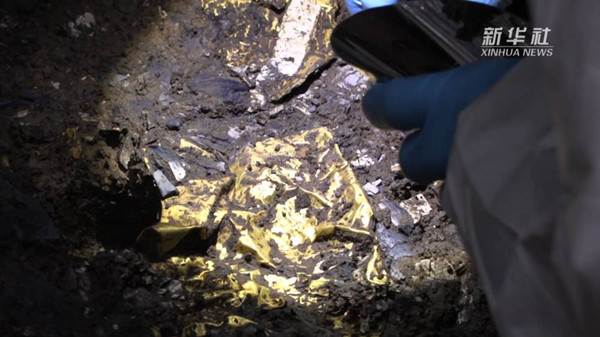此次新發(fā)現(xiàn)的6個(gè)坑狀祭祀遺跡在第1、2號(hào)祭祀坑旁。面積僅3.5平方米的5號(hào)祭祀坑內(nèi)一片金光閃閃,已清理出多件金器、玉質(zhì)管珠和象牙飾品等。正在發(fā)掘的3號(hào)祭祀坑每天都有新發(fā)現(xiàn),6號(hào)祭祀坑確認(rèn)一具“木匣”,長約1.5米、寬約0.4米,木匣內(nèi)外均涂抹朱砂,目前尚不能確認(rèn)其用途。