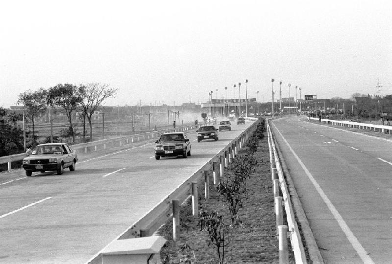 我國第一條新筑的全立交、全封閉、現(xiàn)代化設(shè)施齊全的滬嘉高速公路1988年10月31日下午正式通車。公路全長20.5公里(含兩端入城段道路),路寬45米,為4車道。晝夜通車可達4萬輛。新華社記者張劉仁攝(1988年11月15日發(fā))