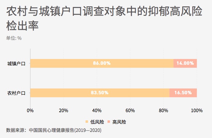 ??? 農(nóng)村戶口人群中抑郁風險略高于城鎮(zhèn)戶口人群