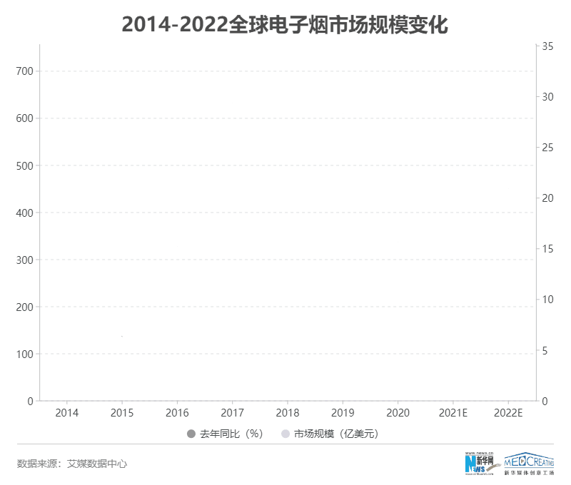 ??? 近幾年,全球電子煙行業(yè)發(fā)展迅速。國(guó)際市場(chǎng)研究中心Euromonitor International報(bào)告顯示,2011年到2018年的七年間,全球電子煙使用人數(shù)整整增漲了6倍。艾媒咨詢(iiMedia Research)數(shù)據(jù)顯示,2020年全球電子煙行業(yè)的市場(chǎng)銷售額達(dá)到424億美元,同比增長(zhǎng)15.6%。