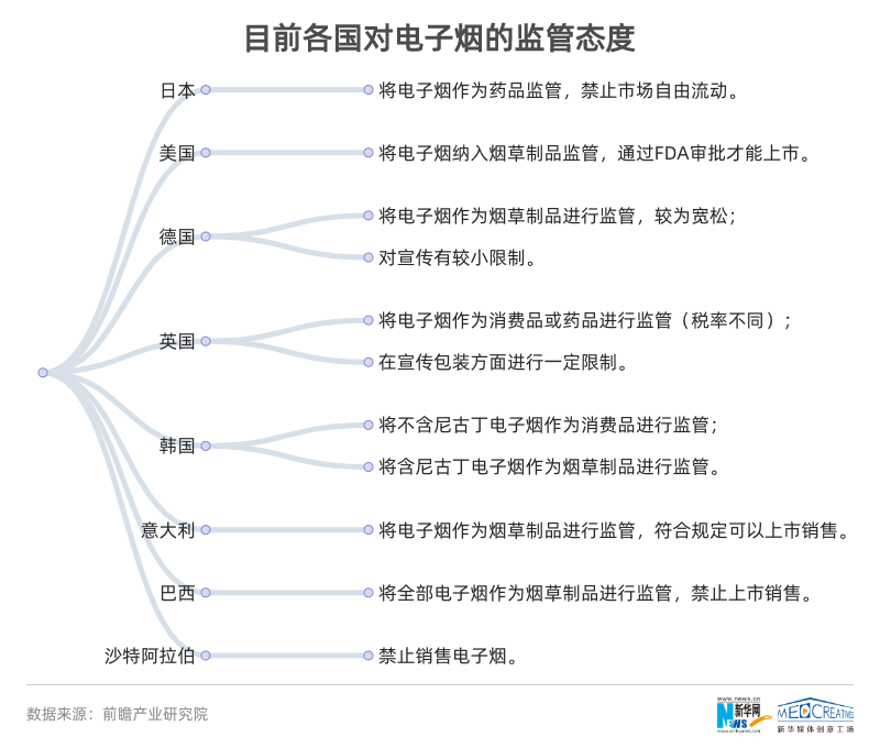 ????? 目前,各國(guó)對(duì)電子煙銷售的監(jiān)管思路和態(tài)度也各不相同,如美國(guó)、德國(guó)、英國(guó)等國(guó)都有對(duì)電子煙嚴(yán)格的監(jiān)管,沙特阿拉伯等國(guó)家禁止銷售電子煙。