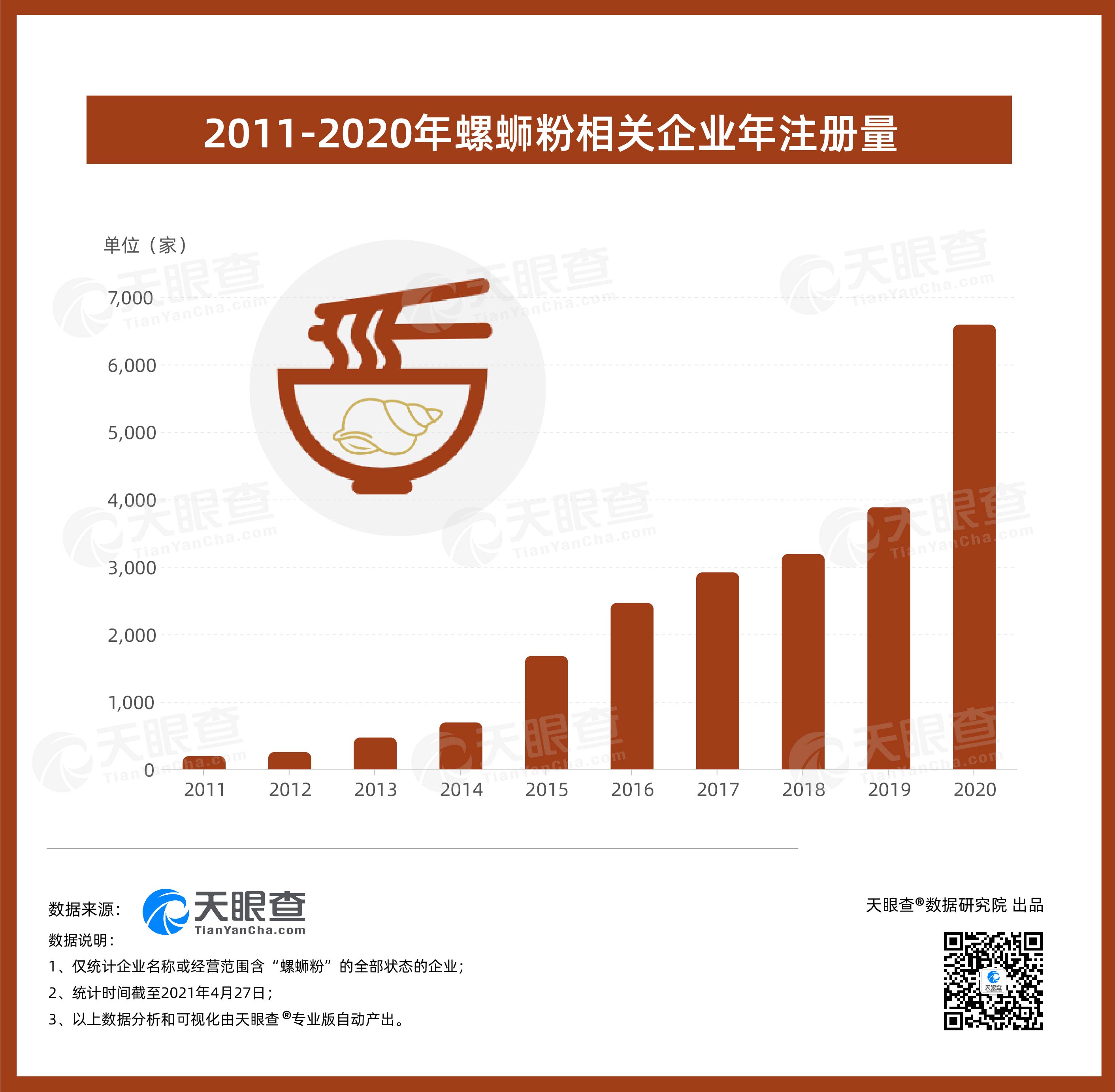 ????? 這碗起源于20世紀(jì)七八十年代夜市的地方小吃,如今是柳州最亮眼的新名片之一。從2014年底第一家袋裝螺螄粉企業(yè)誕生,到2020年產(chǎn)值超百億元,僅僅用了6年時(shí)間。袋裝螺螄粉如今遠(yuǎn)銷(xiāo)海外20多個(gè)國(guó)家和地區(qū),約25萬(wàn)個(gè)就業(yè)崗位遍布在全產(chǎn)業(yè)鏈各個(gè)環(huán)節(jié)。天眼查數(shù)據(jù)顯示,我國(guó)目前有超1.8萬(wàn)家企業(yè)名稱(chēng)或經(jīng)營(yíng)范圍含“螺螄粉”,且狀態(tài)為在業(yè)、存續(xù)、遷入、遷出的螺螄粉相關(guān)企業(yè)。其中,近9成的相關(guān)企業(yè)注冊(cè)時(shí)間在5年之內(nèi)。