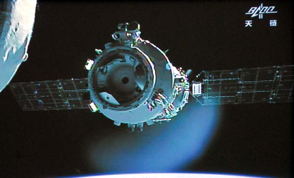 精彩瞬間:飛船在140米停泊點停留 狀態(tài)正常