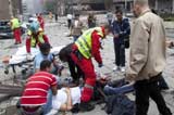 救援人員在爆炸現(xiàn)場忙碌