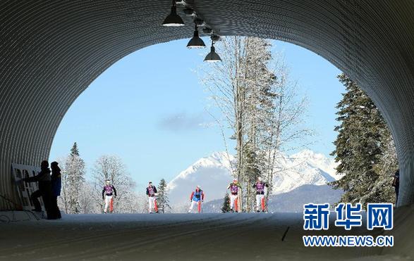 ????資料圖片:2月5日,運(yùn)動(dòng)員在訓(xùn)練時(shí)穿過賽場(chǎng)的一處隧道。當(dāng)日,各隊(duì)運(yùn)動(dòng)員來到索契雪上賽區(qū)勞拉越野滑雪和冬季兩項(xiàng)中心進(jìn)行適應(yīng)性訓(xùn)練,以備戰(zhàn)8日在這里開始的冬奧會(huì)越野滑雪比賽。 新華社記者 王松 攝