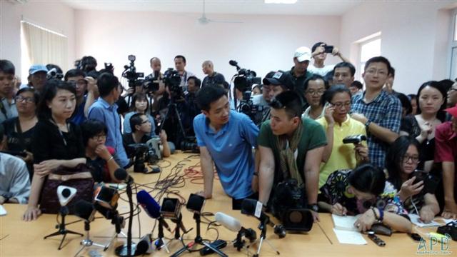 圖為設在富國島的越南搜救前線指揮辦公室,各國記者在等待新聞發(fā)布會的召開。