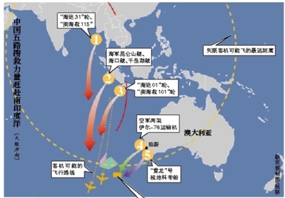 中國(guó)外交部發(fā)言人洪磊21日在介紹馬航失聯(lián)客機(jī)搜尋情況時(shí)表示,中澳保持密切溝通和協(xié)調(diào),中方派遣有關(guān)的軍機(jī)和船艦前往相關(guān)海域得到了澳方的支持和配合。他說(shuō),交通運(yùn)輸部進(jìn)一步優(yōu)化后續(xù)搜救方案。中國(guó)海上搜救中心指示南下編隊(duì)“海巡01”輪、“南海救101”輪繼續(xù)按原定搜尋方案向圣誕島以南部分的我方南部搜尋區(qū)域搜索前進(jìn),并逐漸向發(fā)現(xiàn)疑似失聯(lián)客機(jī)殘骸海域靠近;北上編隊(duì)“海巡31”輪、“南海救115”輪逐漸向我方南部搜尋區(qū)前進(jìn),從北向南開(kāi)展搜尋工作。目前,海軍昆侖山艦、海口艦、千島湖艦等已趕赴南印度洋疑似發(fā)現(xiàn)失聯(lián)客機(jī)殘骸的海域。