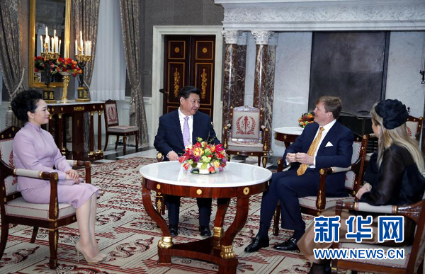 3月22日,國家主席習(xí)近平在阿姆斯特丹會(huì)見荷蘭國王威廉-亞歷山大。當(dāng)習(xí)近平和夫人彭麗媛抵達(dá)王宮時(shí),威廉-亞歷山大國王和馬克西瑪王后熱情迎接。雙方進(jìn)行了親切友好的交談。資料圖