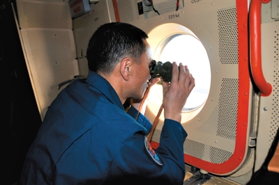 24日,中國空軍機(jī)組人員在任務(wù)海域搜索。 新華社發(fā)