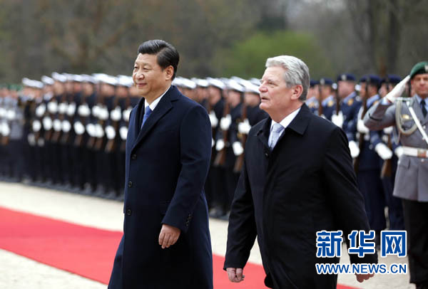 ????新華網(wǎng)柏林3月28日電(記者李斌 何夢舒)國家主席習(xí)近平28日在柏林會見德國總統(tǒng)高克。雙方就中德關(guān)系及共同關(guān)心的問題坦誠深入交換意見。