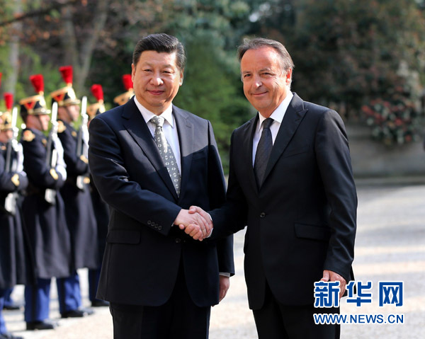 3月27日,國(guó)家主席習(xí)近平在巴黎會(huì)見法國(guó)參議長(zhǎng)貝爾。新華社記者 龐興雷 攝