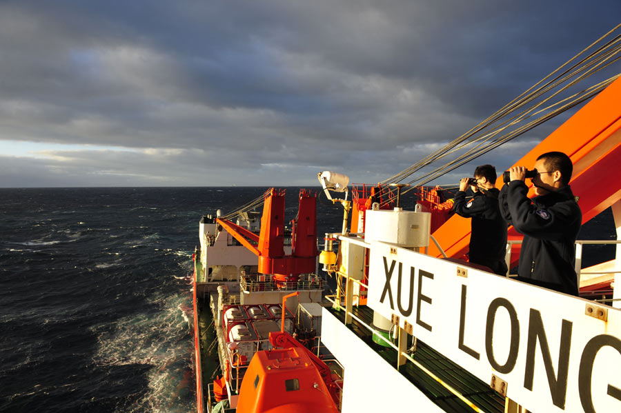 ????經中國海上搜救中心同意,“雪龍”號科考船28日下午全速趕往澳大利亞海事安全局最新調整的搜尋區(qū),并將與“海巡01”會合,進行中方船只現場指揮聯絡工作的交接。根據國際調查團隊向澳方提出的建議,澳大利亞海事安全局28日調整了搜索部署,搜尋范圍發(fā)生較大改變。新華社記者張建松攝