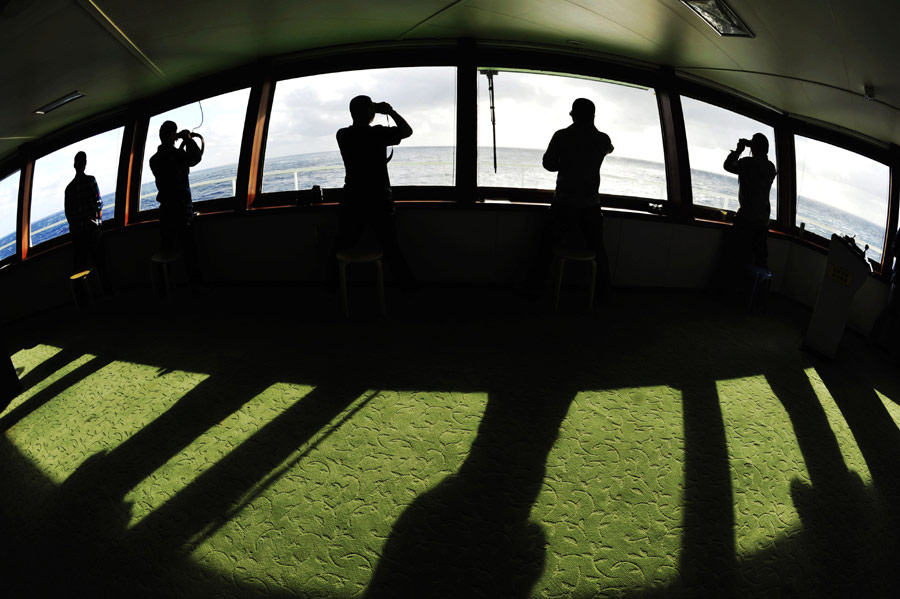 ????經中國海上搜救中心同意,“雪龍”號科考船28日下午全速趕往澳大利亞海事安全局最新調整的搜尋區(qū),并將與“海巡01”會合,進行中方船只現(xiàn)場指揮聯(lián)絡工作的交接。根據國際調查團隊向澳方提出的建議,澳大利亞海事安全局28日調整了搜索部署,搜尋范圍發(fā)生較大改變。新華社記者張建松攝