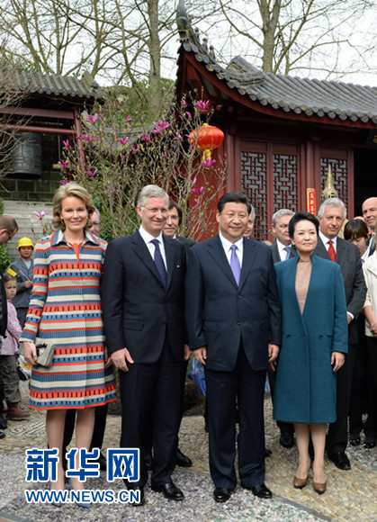????習(xí)近平和夫人彭麗媛抵達(dá)時(shí),受到菲利普國(guó)王和瑪?shù)贍柕峦鹾蟆⒈壤麜r(shí)首相迪呂波熱情迎接。兩國(guó)領(lǐng)導(dǎo)人一同步入中國(guó)園。亭臺(tái)樓閣、雕梁畫棟、鳥語花香,這里宛如一幅恬靜祥和的中華寫意畫。兩國(guó)元首夫婦沿著回廊曲徑,穿過青翠竹林,前往大熊貓園。他們邊走邊談,回顧中比兩國(guó)友好交往。
