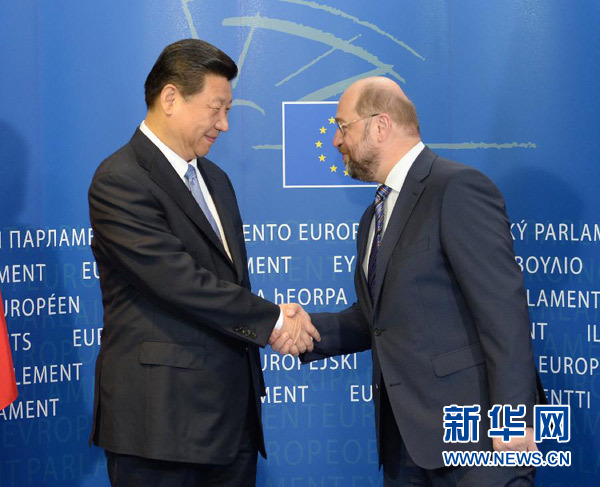????新華網(wǎng)布魯塞爾3月31日電(記者孟娜 徐劍梅)國(guó)家主席習(xí)近平31日在布魯塞爾會(huì)見(jiàn)歐洲議會(huì)議長(zhǎng)舒爾茨。