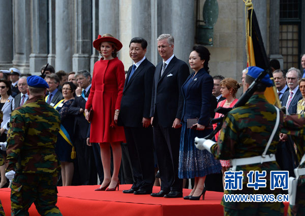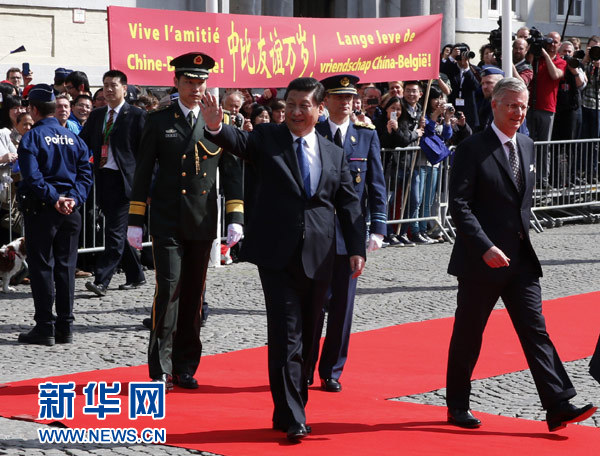 ??? 4月1日,國家主席習(xí)近平離開比利時(shí)布魯日市啟程回國。離開前,比利時(shí)國王菲利普在布魯日廣場(chǎng)為習(xí)近平舉行隆重歡送儀式。 新華社記者馬占成攝