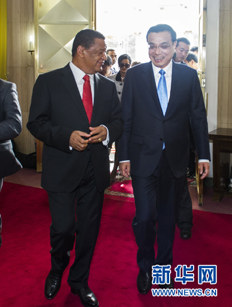 國務(wù)院總理李克強當?shù)貢r間6日上午在亞的斯亞貝巴國家宮會見埃塞俄比亞總統(tǒng)穆拉圖。